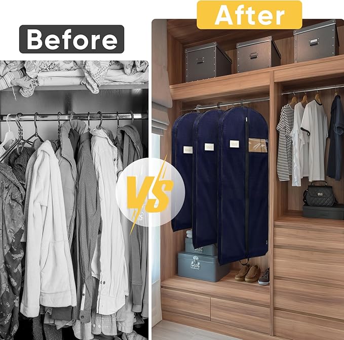 - [LIGHTWEIGHT AND PORTABLE] Our suit bag is made from lightweight non-woven fabric, making it easy to carry without adding extra bulk to your luggage. When not in use, our garmet bag can be folded and conveniently stored, taking up minimal space in your closet or suitcase