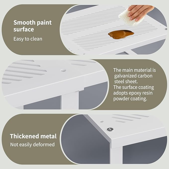 - 【Durable Material】Crafted from cold-rolled carbon steel with a rust-resistant epoxy resin coating, this sturdy kitchen cabinet shelf resists fading and withstands moderate heat. Its odor-free design offers reliable support, holding up to 11 lbs per tier for everyday storage needs. The expandable structure adapts seamlessly to organize plates, cookware, and pantry items efficiently.
