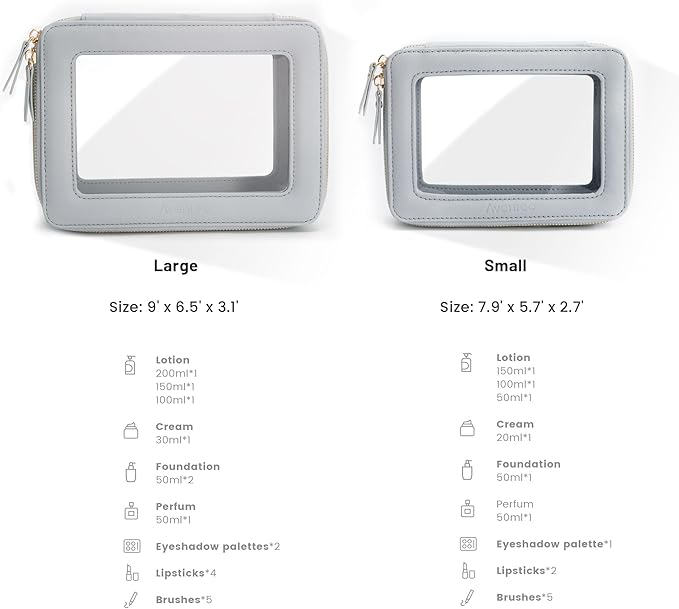 - ❤【TSA-APPROVED COMPANION】This makeup travel case is perfect for traveling as it is TSA compliant. The transparent panels help you keep track of everything you've packed. Our cute zipper pouch allows you to travel in style and with ease either at that TSA checkpoint or in of your destination bathroom.Reduce mess with our transparent train case.