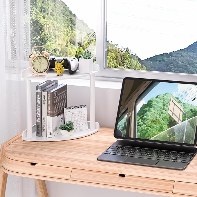 - Wide Application: The 2 tier counter corner shelf can be used as a bathroom organizer, skincare organizer, perfume organizer, spice organzier, toiletries organizer. It can be used for any counter corner for storage. The bathroom, kitchen, bedroom, living room and dining room. You can used it for vanity storage organzier or dresser organizer, display your cosmetics or perfume. The corner shelf can also be used for office desktop for office supplies organizer. Truly multifunction.