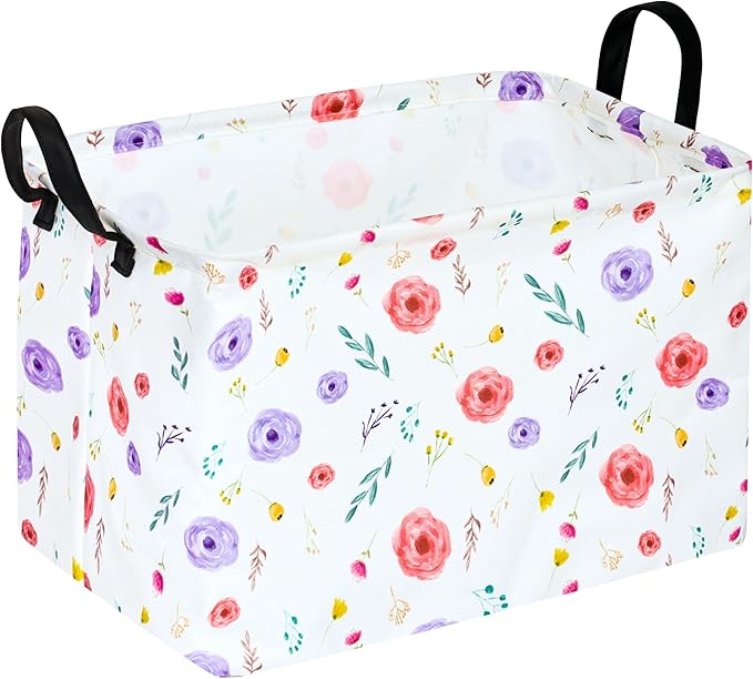 KUNRO Rectangle Flower Patter Storage Basket Gift Shelf Basket Storage Bin, Nursery Basket Organizer Box for With Handles for Room Deco