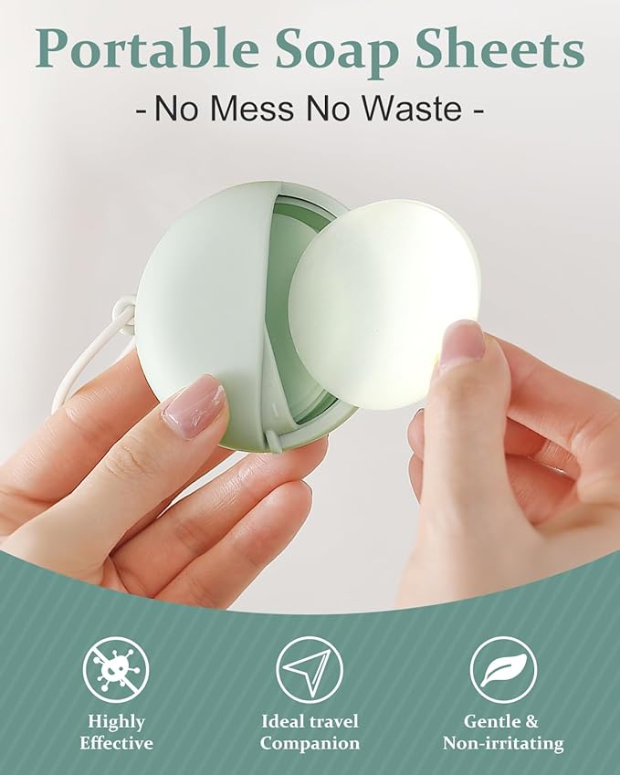 - Compact and Travel-Friendly: Portable soapsheets are small, flat, and easy to carry. Can fit into a pocket, purse, or travel bag without taking up much space.These soapsheets are ideal for travel, outdoor activities, or emergencies