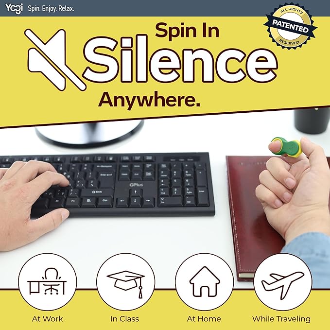 - SPIN IN STYLE – A compact silent fidget toy that doubles as a focus tool. Loved as a fidget toy for adults. Perfect for adults seeking sensory relief, quiet fidgeting at work, during meetings, or while studying.