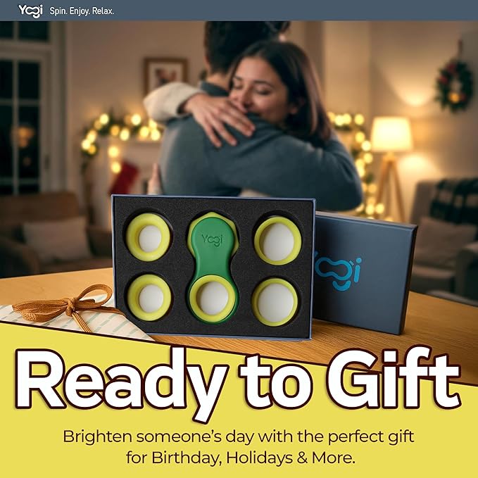 Yogi Fidget Toy – Silent Sensory Spinner for Adults & Kids – Stress Relief Fidgets for ADHD, Anxiety – Fidget Toys for Adults – Includes 5 Finger-Fit Rings – Work, School & Travel – Lime