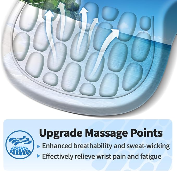 - ERGONOMIC MOUSE PAD WITH WRIST REST: Features innovative 8-degree slope design and therapeutic massage bumps that provide superior wrist support. This comfortable office mouse pad effectively relieves wrist pain, improves carpal tunnel relief, and maintains optimal wrist positioning during extended computer use.