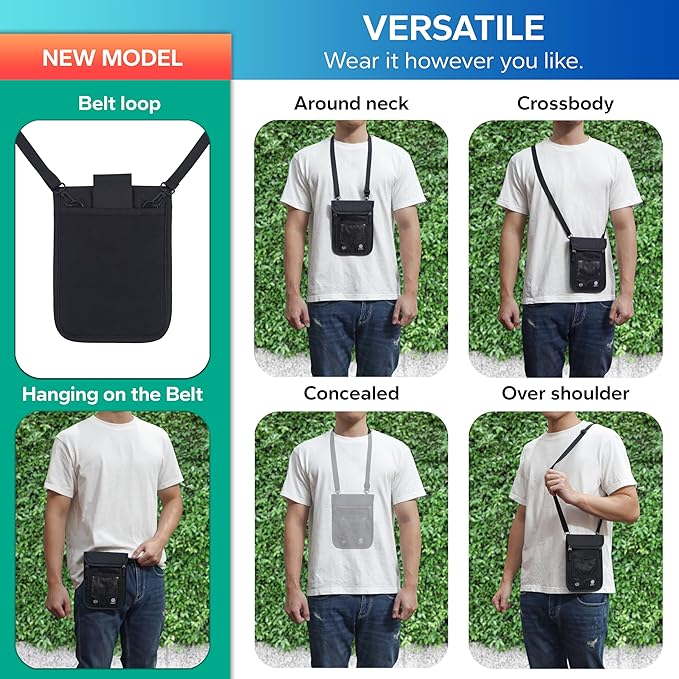 - ✅ DESIGNED FOR SAFE TRAVEL – This travel neck pouch becomes nearly invisible when concealed under layers of clothing. Pickpockets will find it extremely difficult to access your valuable belongings. Additionally, each unisex passport wallet features multiple layers with RFID-blocking technology, safeguarding your credit cards, bank cards, passports, and any personal information from potential e-theft.