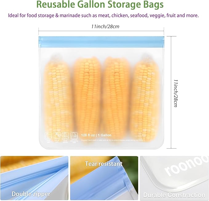 - 【Food Grade Material】 ROONOO reusable freezer bags are made of food grade PEVA material and passed certified test to ensures the reusable food storage bags are BPA free, PVC, Chloride and Lead FREE. Healthy safe for family and earth.