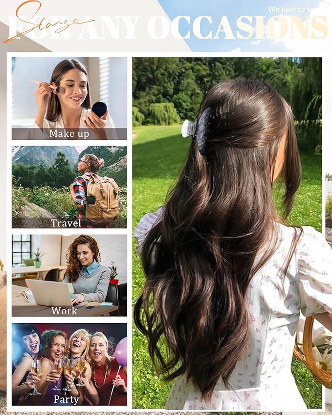 - 【SUITABLE FOR ALL】These claw clips are suitable for all hairstyles in different ages. Young girls, little girls, mature women, mothers, etc. Fit perfectly with this special hair claw clips, perfectly integrate into your life. You can give the sturdy hair clips to your friends, wife, daughter or classmates.It can be used in different occasions will