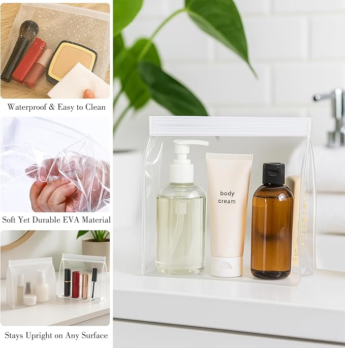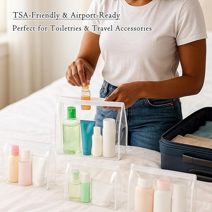 - Resealable and Reusable: Each clear toiletry bag features double-sealed seams for added durability, making it perfect for storing shampoos, travel bottles, creams, and other essentials in your checked luggage. The upgraded, wide side and non-slip zipper design allow for easy opening and closing, ensuring convenience and security during your travels.