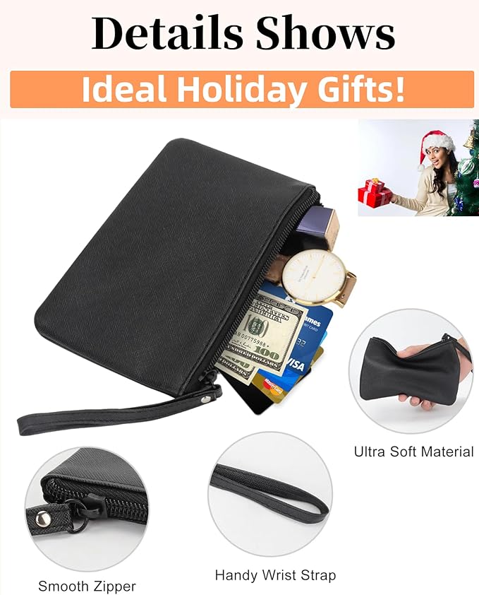- Versatile Use Little Purse: Functions as wristlet wallets for women, phone wristlets, small makeup bag for purse, purse organizers for inside purse, small zipper pouch, coin holder for car, change purse, clutch purses, period feminine product bag