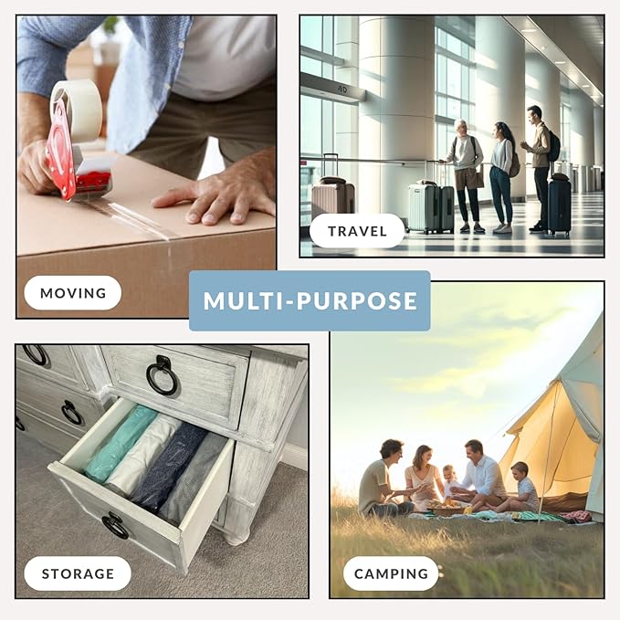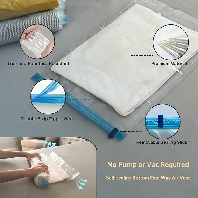 - Versatile and Flexible: Use them as storage bags for clothes at home or compression bags for your luggage. You will find them indispensable for seasonal clothing storage and packing for extended trips