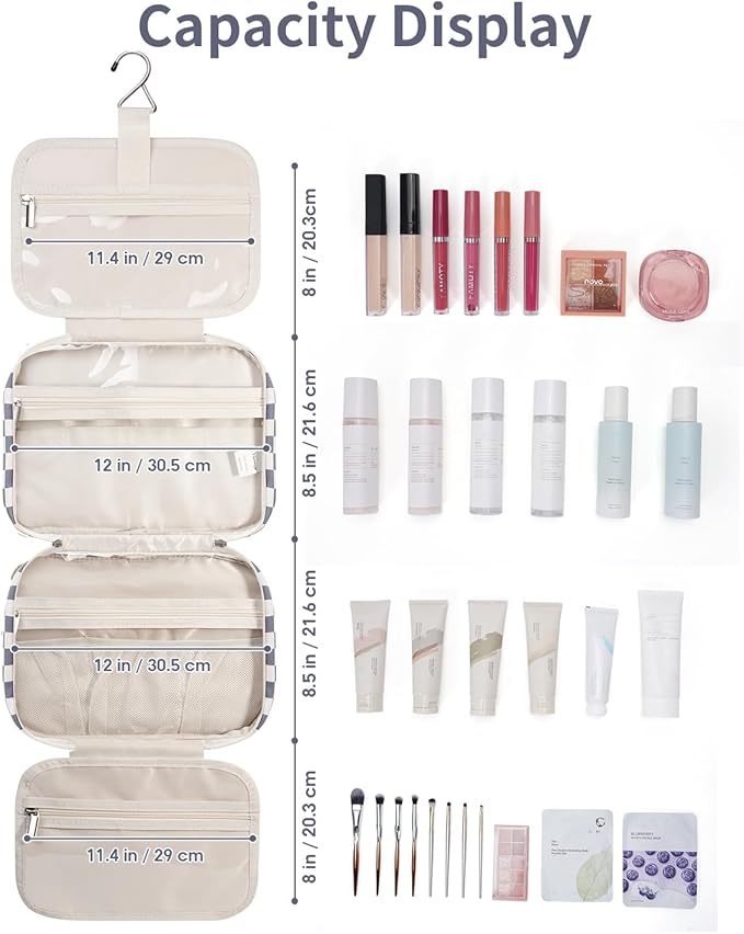 - LARGE VERSION - Fold size 12"x9"x5.5”/30.5x22x13 cm. We launch larger version to meet large-capacity, which you may choose large or medium size based on your needs. It could easily fit full-size travel essentials like shampoo & conditioner, lotion, face wash, toothpaste, toothbrushes, hair brush and daily makeups