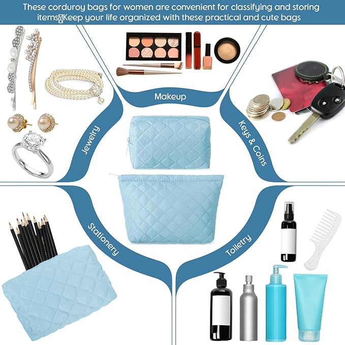 - Convenient Sizes to Cater Your Needs: our makeup bag set comes in two different sizes: about 10 x 2.4 x 6.7 inches/ 25 x 6 x 17 cm and about 6.3 x 2.8 x 3.5 inches/ 16 x 7 x 9 cm; These quilted bags are convenient for sorting and storing your essentials