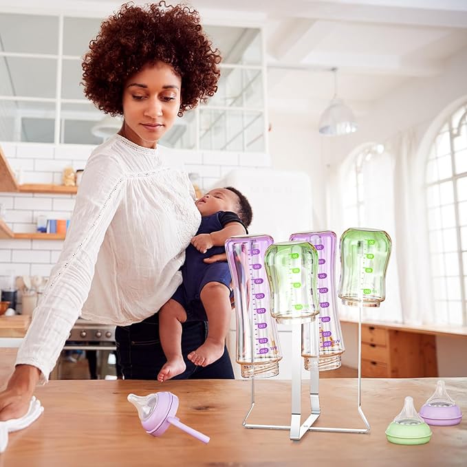 - 【Protective Silicone Design】: This baby bottle drying rack has protective silicone tips on the top of its four support legs. This design effectively prevents scratches on items such as baby bottles, water bottles, sport bottles, and drinking glass bottles when they are placed on the rack.