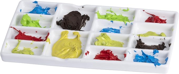 - 【Spacious and Versatile】: Boasting 14 wells, this Paint Tray Palette can satisfy diverse needs. Ideal for working with watercolor, gouache, acrylic, oil, and tempera painting. The lid also serves as a color mixing area or a small drawing board.