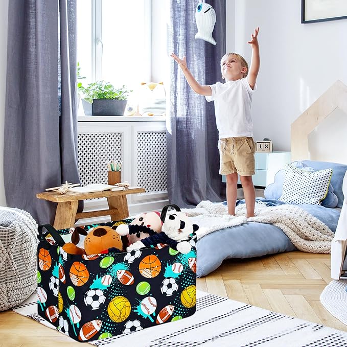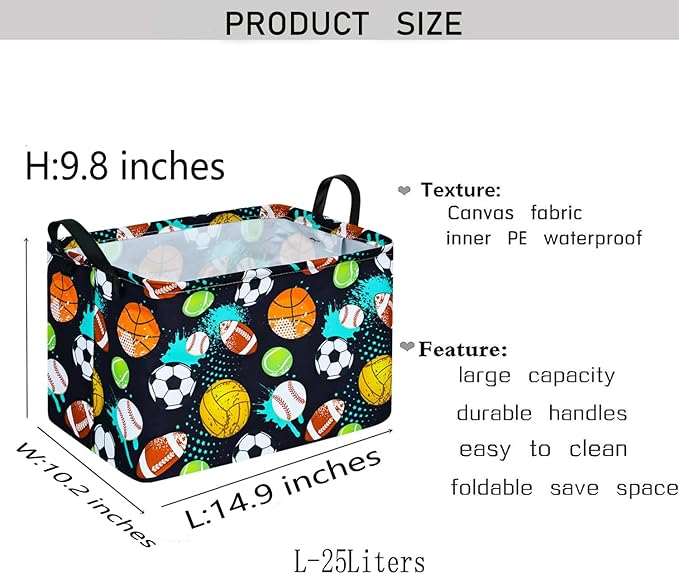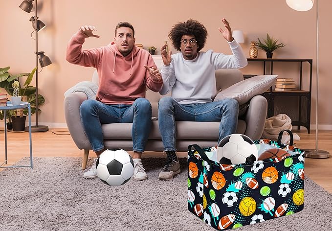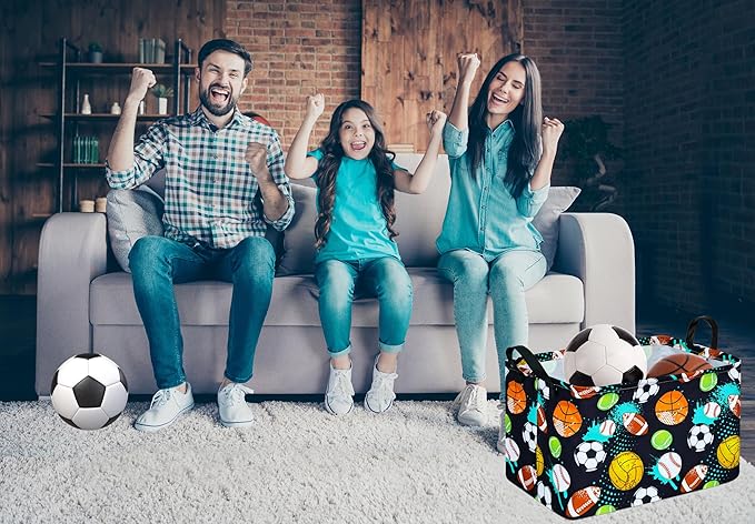 KUNRO Football Basketball Storage Basket Gift Shelf Basket Storage Bin, Nursery Basket Organizer Box for With Handles for Room Deco