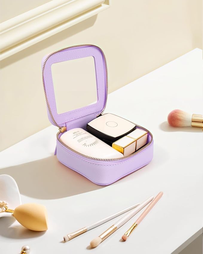 - Small and Clear Design: You will get 1PCS small minimalist boxy shape travel makeup bag which is sleek and minimalistic look for your makeup accessories collection. And is designed with a transparent PVC window,all items are clear at a glance, and you can quickly choose the cosmetics you need.Portable and lightweight Slip it into your purse, backpack, everyday tote or travelling bag for easy access to your must-have items. Size:5.1'' x 4.8''x 2''