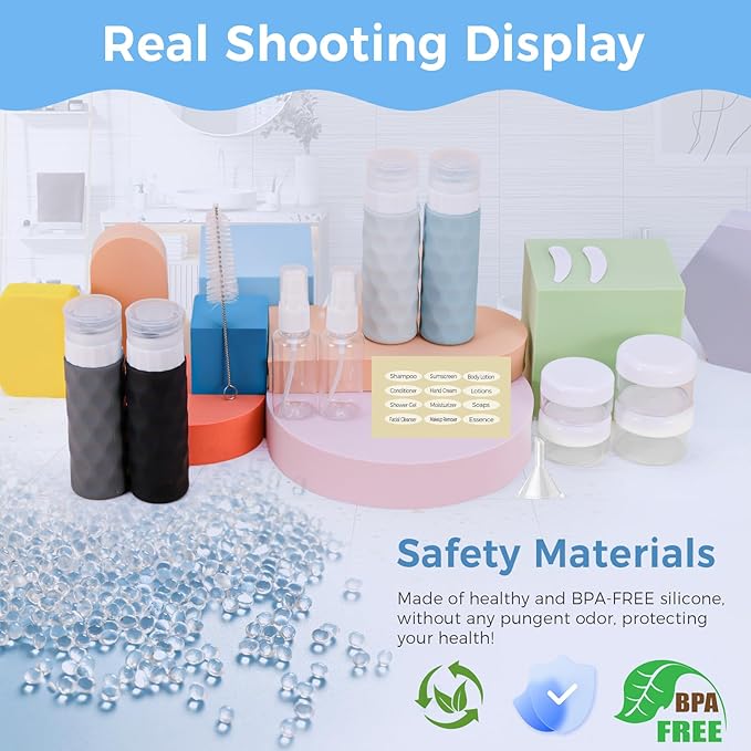 - 【FOOD GRADE BPA FREE SILICONE】Silevoler 16pack Travel Bottles for Toiletries include 4 travel silicone travel bottles made from BPA-free premium silicone, meaning your items won't be contaminated by any toxins. Use your daily personal care items anywhere