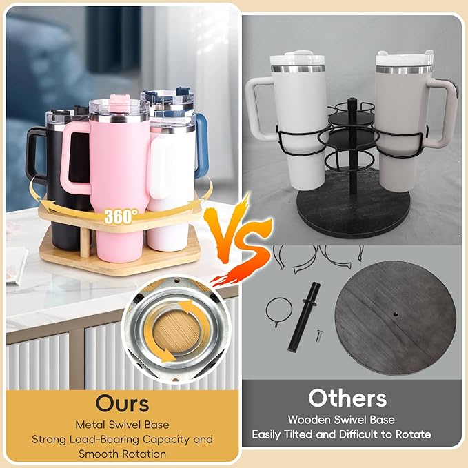 - Rotatable Design: Water bottle storage rack features a 360° rotatable design and patented structure, this practical bottle organizer ensures quick and easy access to your favorite water bottle. The upgraded turntable base ensures seamless rotation, whether you store it in a cabinet or on your kitchen countertop