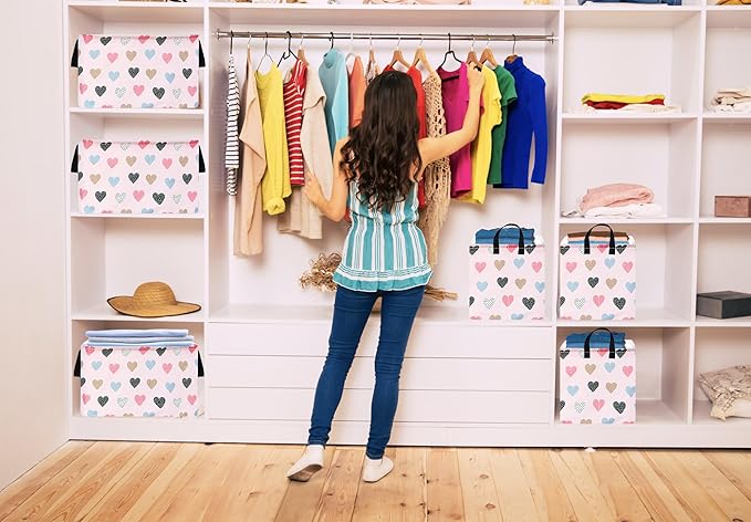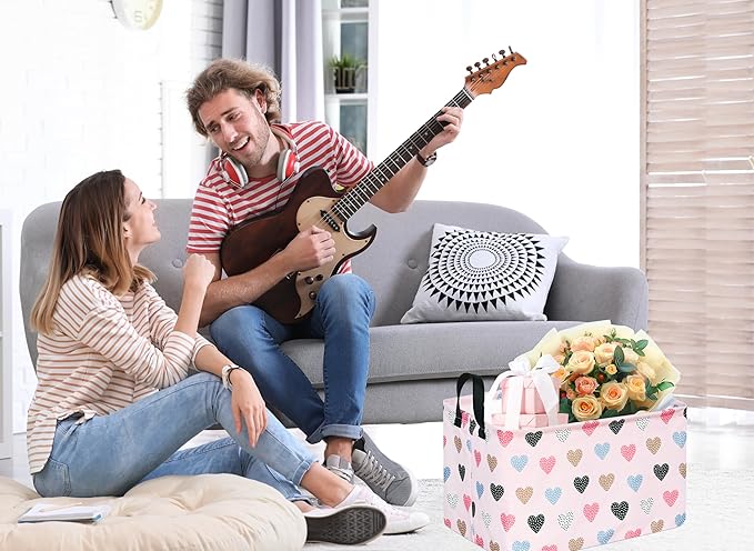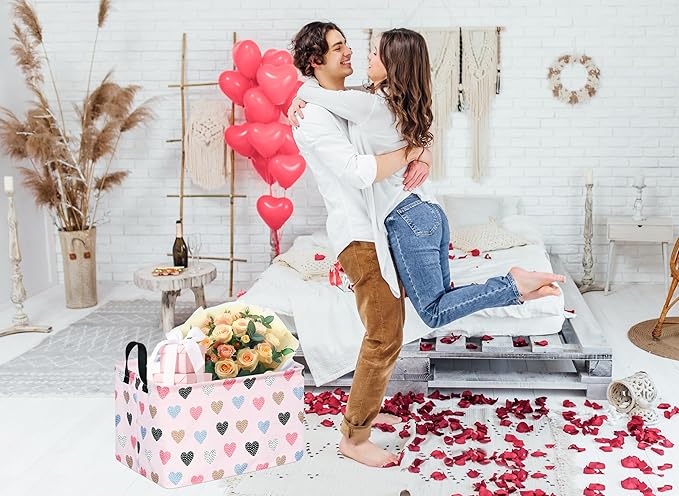 KUNRO Rectang Heart Valentine's Storage Basket Gift Shelf Basket Storage Bin, Nursery Basket Organizer Box for With Handles for Room Deco