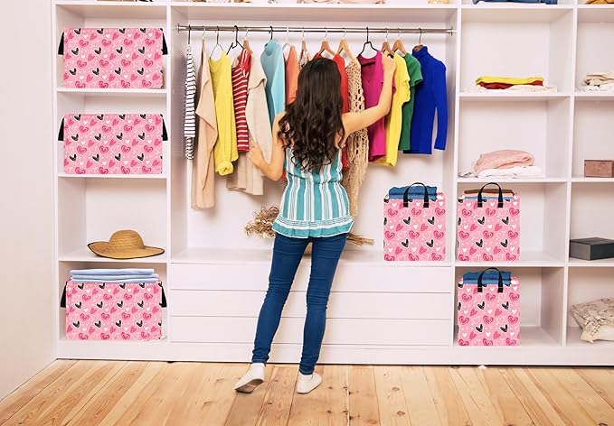 KUNRO Rectang Heart Valentine's Storage Basket Gift Shelf Basket Storage Bin, Nursery Basket Organizer Box for With Handles for Room Deco