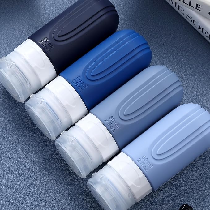- TSA carry on approval: 4 pack 2 oz silicone travel bottles, very suitable for shampoo, conditioner, shower gel, lotion, hand sanitizer and shower gel. It is equipped with a high-quality zipper transparent wash bag, which saves space and allows you to travel long distance freely like a professional.