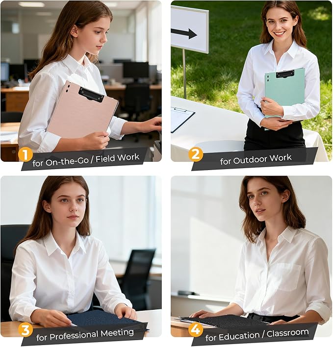 - Fold Design - The 360°flip cover protects privacy, while the double-fold design ensures smoother and more stable writing. The rounded corners of foldable clipboard provide added safety for writing