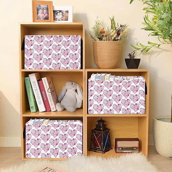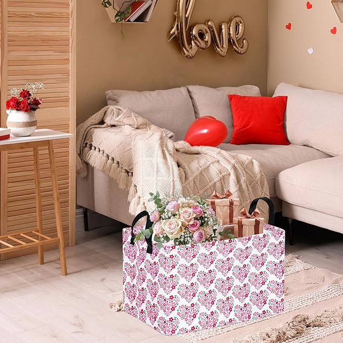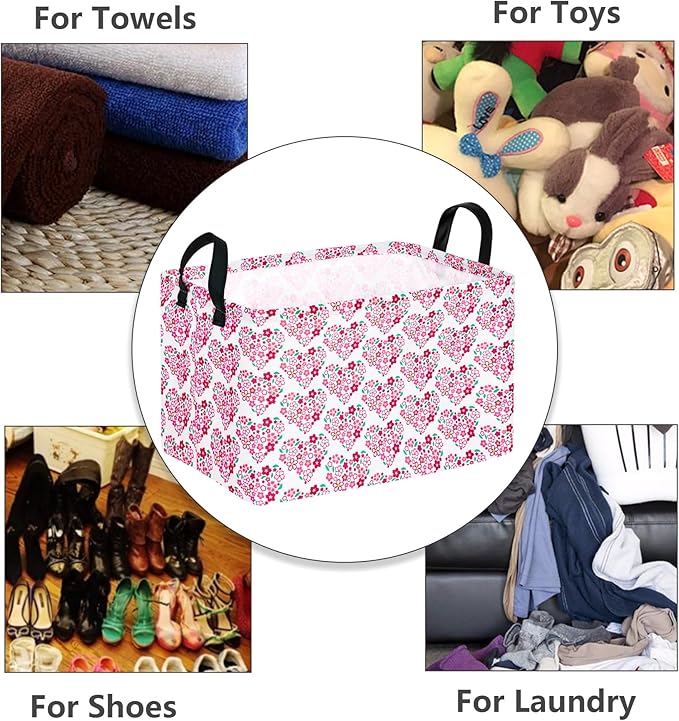 - Heart Print Laundry Basket Storage basket Size: 14.2L x 10.2W x9.8H inches,Girls Room Decor, baby toys Mother's Day basket empty gift great for storage bins,baby shower gift basket,nursery hamper,toy organizer