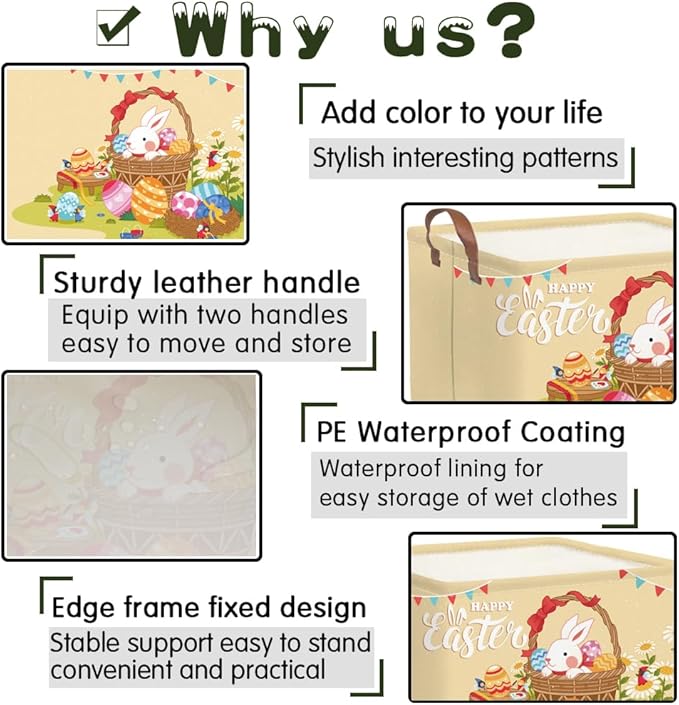 FXOLCSHE Rectangular Easter basket,Easter gift basket,Nursery Hamper,Collapsible waterproof baby toy storage box for Kids,Toy Organizer,Easter Home Decor,Gift Baskets(Flower basket Easter)