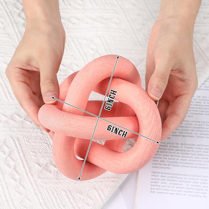 3 Link Wood Knot Decor - Hand Carved Coffee Table Decoration, Boho Chain Link Decor, Modern Shelf, Rustic Objects for Home Living Room Bedroom(Pea-Pink)