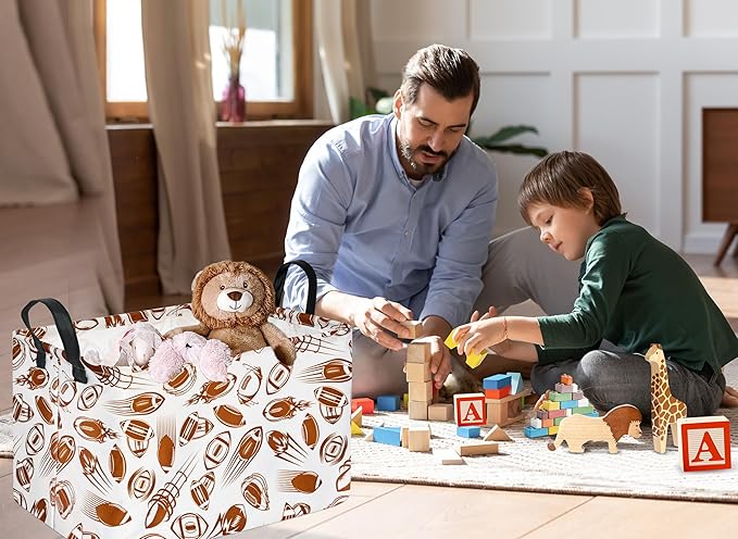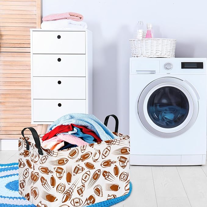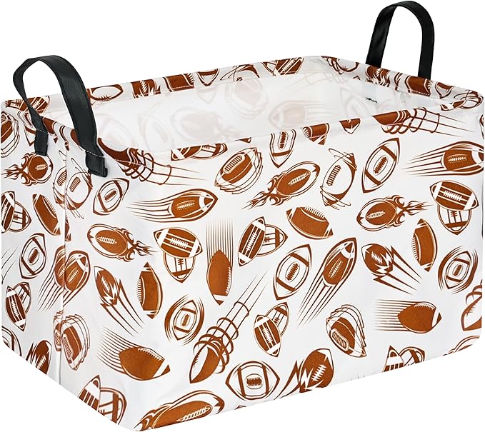 Rec Football Print Box Hamper Storage Basket Collapsible Organizer Bin Gift Shelf Baskets for Home and Kitchen Storage