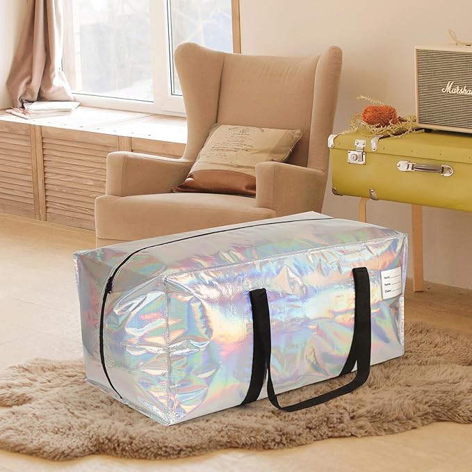 2 Pack Heavy Duty Moving Bags Extra Large Waterproof Foldable Clothing Storage Totes Bags with Zipper, Reinforced Handles, Packing Moving Boxes for Dorm & Seasonal Storage, Iridescent
