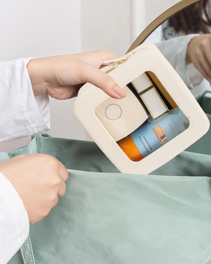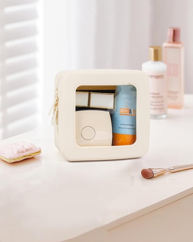 - Clear Design: The clear travel makeup bag designed in a minimalist boxy shape,is sleek and minimalistic look for your makeup accessories collection. And is designed with a transparent PVC window,all items are clear at a glance, and you can quickly choose the cosmetics you need. Size:5.1'' x 5.1''x 2''