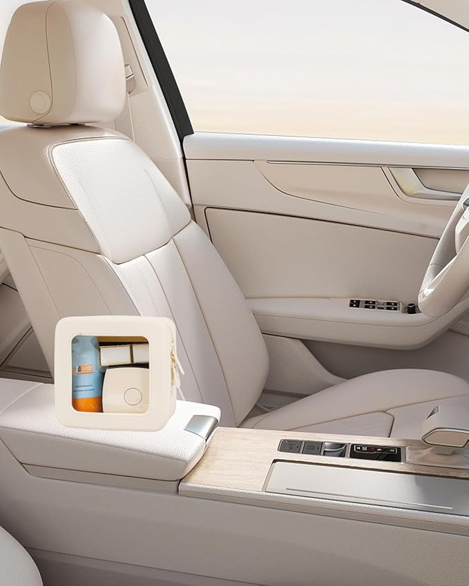 - Car Must Have Essential: Our car essentials small pouch travel toiletry bag is roomy to store your makeup brushes, lipstick, eyebrow pencil, make-up foundation, cables, chargersor and other little items.It make your daily make-up, cream, lipstick, perfume and other beauty things organized and protected.This clear mini toiletry bag can be a good car accessory fits in the center console or other parts of your car