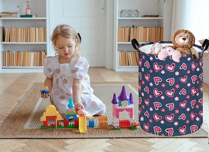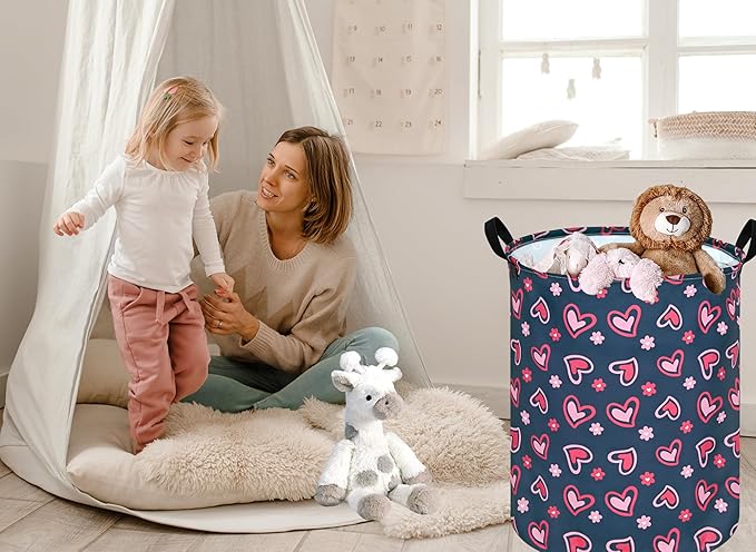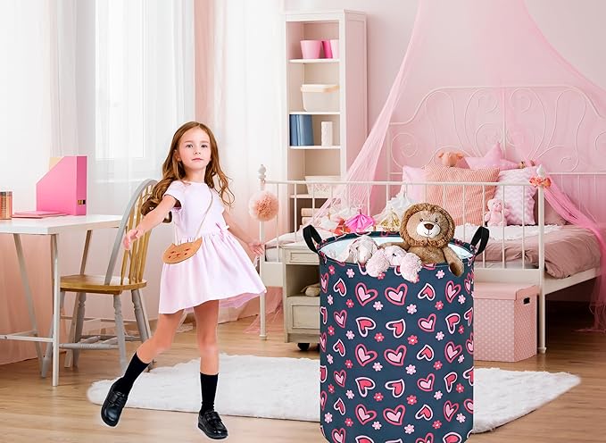 Round Valentine's Laundry Basket Storage Bins Nursery Hamper Gift Baskets for Home,Office,Home Decor