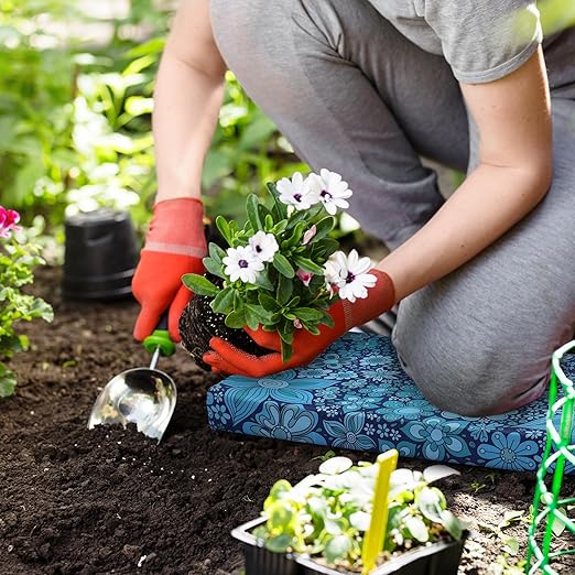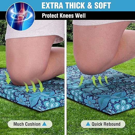 WORKPRO 17" Kneeling Pad with Removable Cover, Soft Pad Cushioning for Knee, Large Foam Kneeler Pad for Gardening, Daily Chores, Workout Supplies, Blue Floral Printing