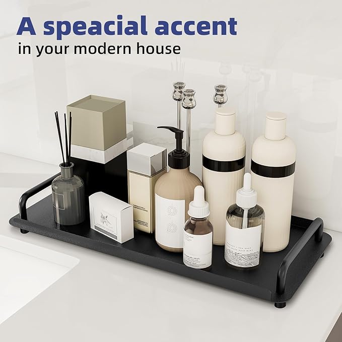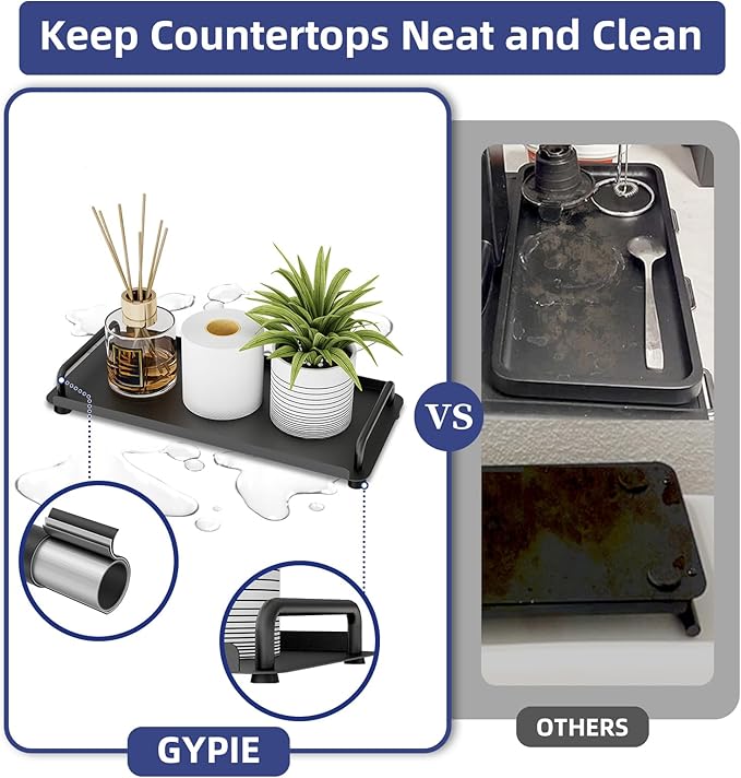 - 【Keep Drying】The bathroom tray are equipped with 4pcs rubber feet to avoid water stains on the countertop and protect countertop without sliding.