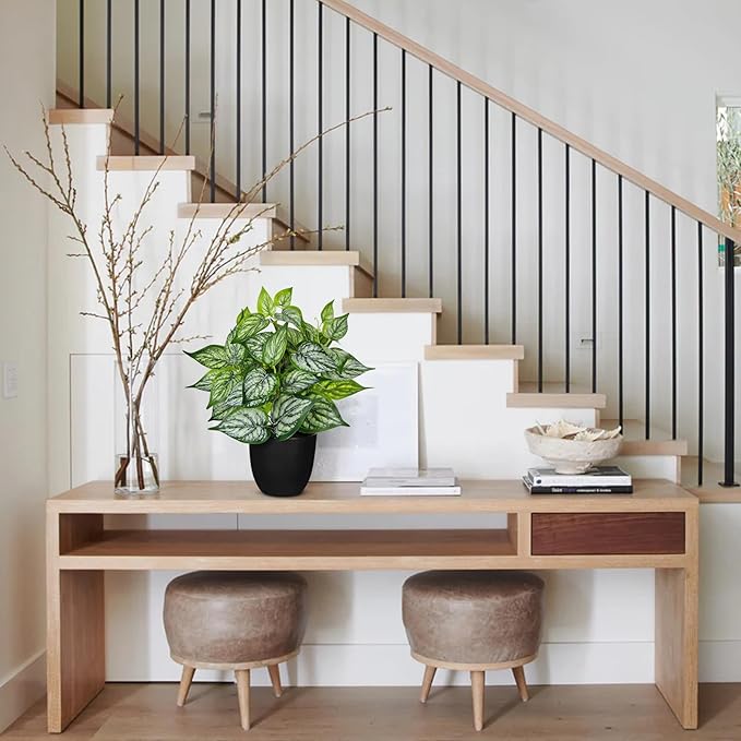 14.5" Artificial Plants Indoor Home Decor, Fake Potted Silk Plants for Shelves Living Room Decorative, Small Artificial Office Desk Plant in Pots, Faux Potted Greenery Tropical House Plant