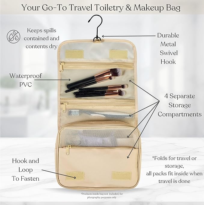 - Travel Packing Organizers Built to Last- Made for travel lovers, these durable packing cubes feature breathable mesh fronts for visibility and ventilation, smooth double zippers with extended pull cords, lightweight foldable fabric, and a strong portable handle. Includes a separate shoe bag to keep footwear away from clean clothes, a laundry bag for dirty items, and a hanging toiletry bag with a metal swivel hook for easy access in small spaces. Whether you're headed to a cruise, camping trip, or beach vacation, this luggage organizer set ensures your travel accessories stay clean, separated, and easy to find.