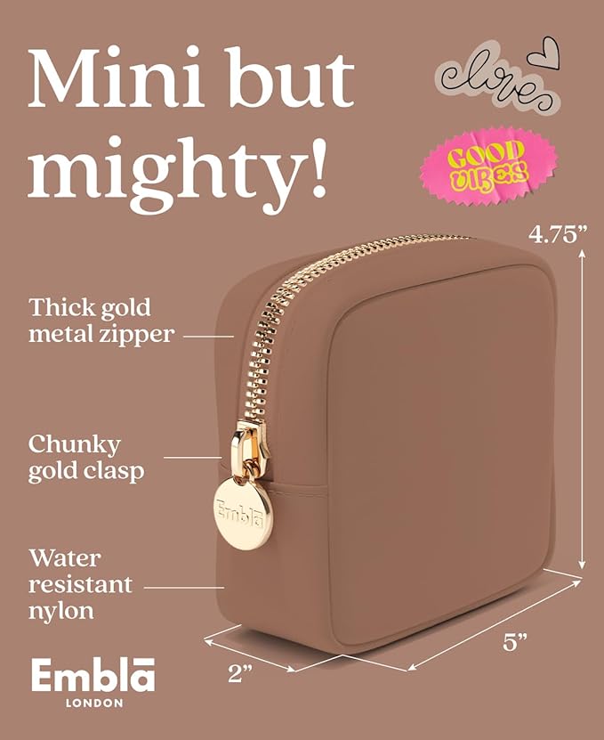 - TRAVEL + CUTE = EMBLA! - Our bags are THE trendy & preppy storage gifts! Simply pick your size (Mini, Large or XL) and start organizing all of your makeup, lipstick, hair stuff, snacks and jewelry accessories! Or use it as a clutch handbag, makeup brush holder, skin care bag, zippered carry case or coin purse wallet!
