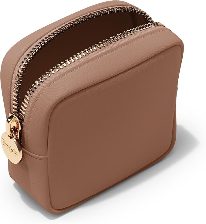 Embla Makeup Bag Travel Cosmetics Pouch and Toiletry Bag, Nylon Zipper Pouch Purse, Cute Make Up Organizer Storage Tote for Women Girls, Travel Skincare Case, Small Makeup Bags, Mocha Mousse
