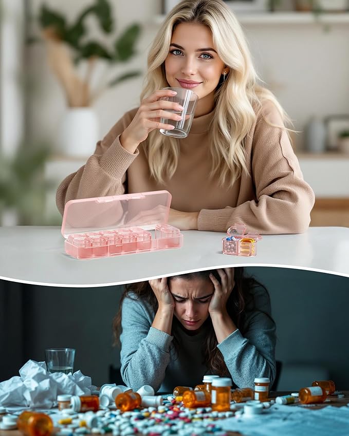 - 【Lightweigh&Travel-Ready】Designed for life on the go, this ultra-portable pill organizer slips easily into your pocket or bag. Whether you're at work, at the gym, or on a weekend trip, your meds are always within reach. Stay organized anytime, anywhere!