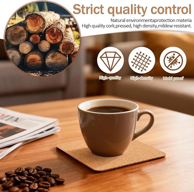 - Premium Material: These cork coasters are made of high-quality natural cork, these coasters durable, water absorption, with strong self-adhesive backing they can be firmly adsorbed on various surfaces, soft to feel, and not easy to break, natural cork no odor and non-slip surface for a long time