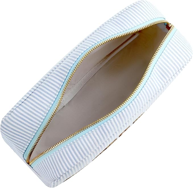 - [Smooth zipper]: Sturdy metal zipper, fine workmanship, makes cosmetic bag smoother and easy to pull and adds a touch of elegance.Perfect neutral bag for year round use make it matching set! The design of seersucker with zipper keeps you on the cutting edge of fashion,very light and durable for daily use.