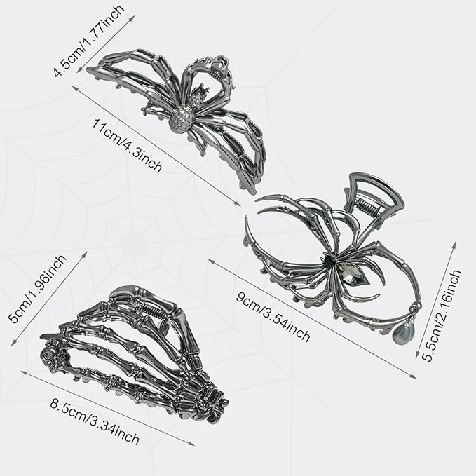 - ๐ใ3 Different ClawsใYou will get 3 different hair claws in gun black color, simple and fashionable hair claw jaw clips which size are about 3.3 to 4.4 inches, they are fit for any dress, dating hairstyle you wear to match all your daily outfits. The spider skeleton spooky hair clip claws are especially fit for Halloween.