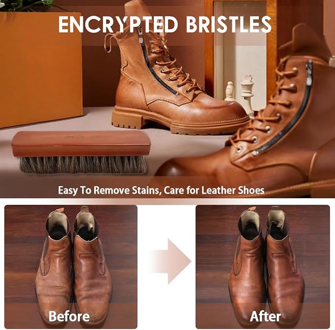 - Wide Use: Horse hair brushes are perfect for cleaning leather products such as shoes, sofas, boots, jackets, clothes, gloves, etc. Our shoe brush is also suitable for cleaning bags, purses, car seats, furniture, luggage, etc. It is great for daily shoe shine and home cleaning.