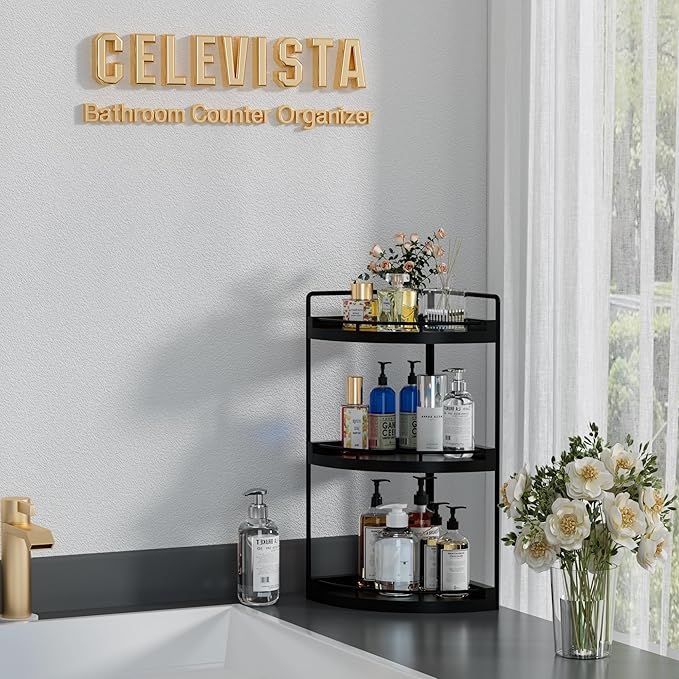 - Spacious 3 Tier Bathroom Organization- This bathroom counter shelf features a spacious 3 tiered layout, perfect for storing sink products, caddy and perfume while maximizing vertical space. Measuring 7.7'' x 7.7'' x 17.5''