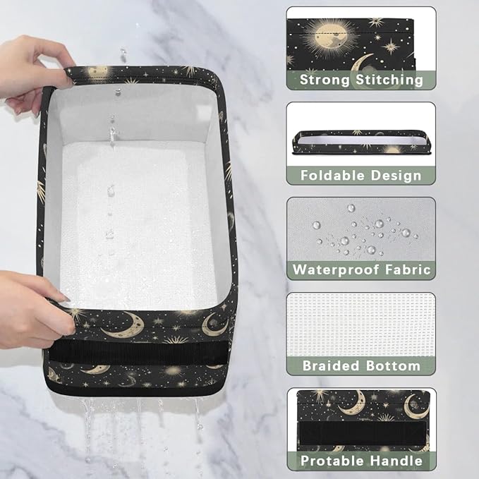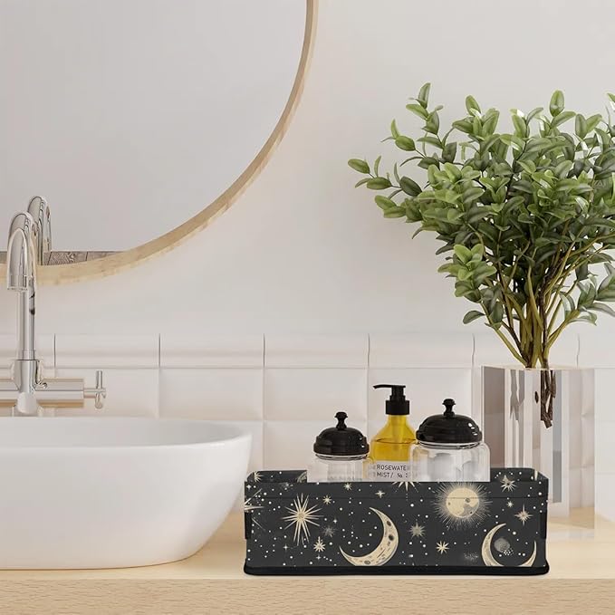 Moon Sun Small Bathroom Baskets for Toilet,Foldable Toilet Paper Tank Basket Organizer for Towels Storage Decorative Open Storage Bins for Home,Closet,Containers,Cabinet