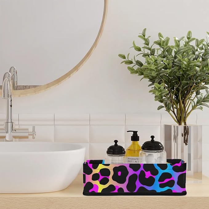 Cheetah Rainbow Small Bathroom Baskets for Toilet,Foldable Toilet Paper Tank Basket Organizer for Towels Storage Decorative Open Storage Bins for Home,Closet,Containers,Cabinet