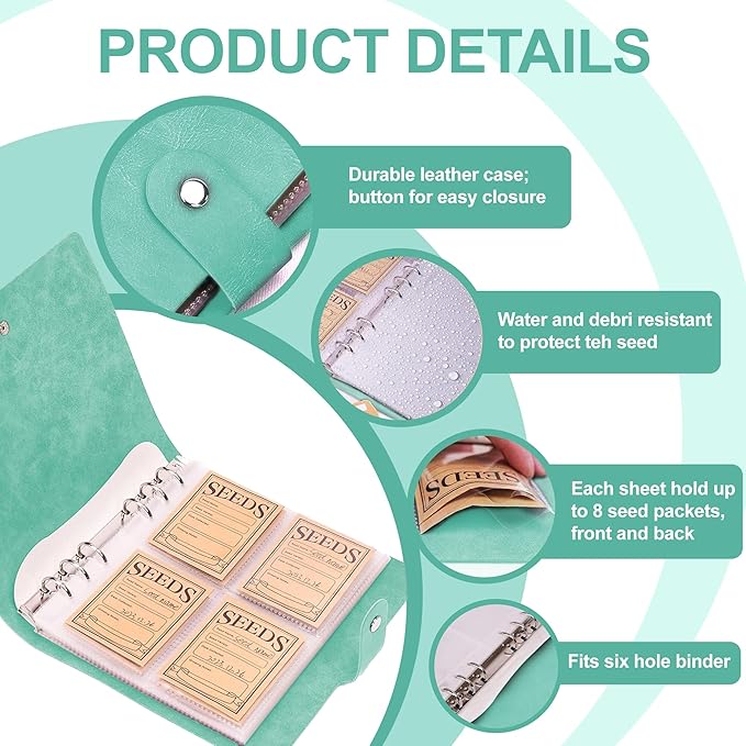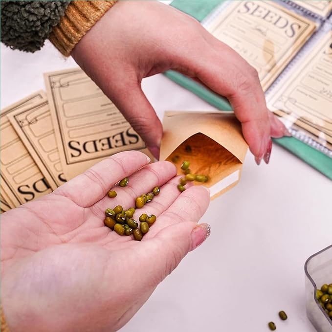 - Package Include:You will receive a green seed packet organizer, including 25 sheets,each piece of seed organizer has 4 pockets on the front and back,200 pockets in total.You will also get 100 pieces of seed paper envelopes,which can keep your seeds